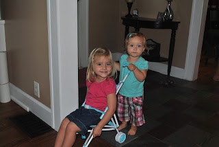 One day Mom went in to make lunch and when she came out this is what she found...two happy girls squeezed into one little car!