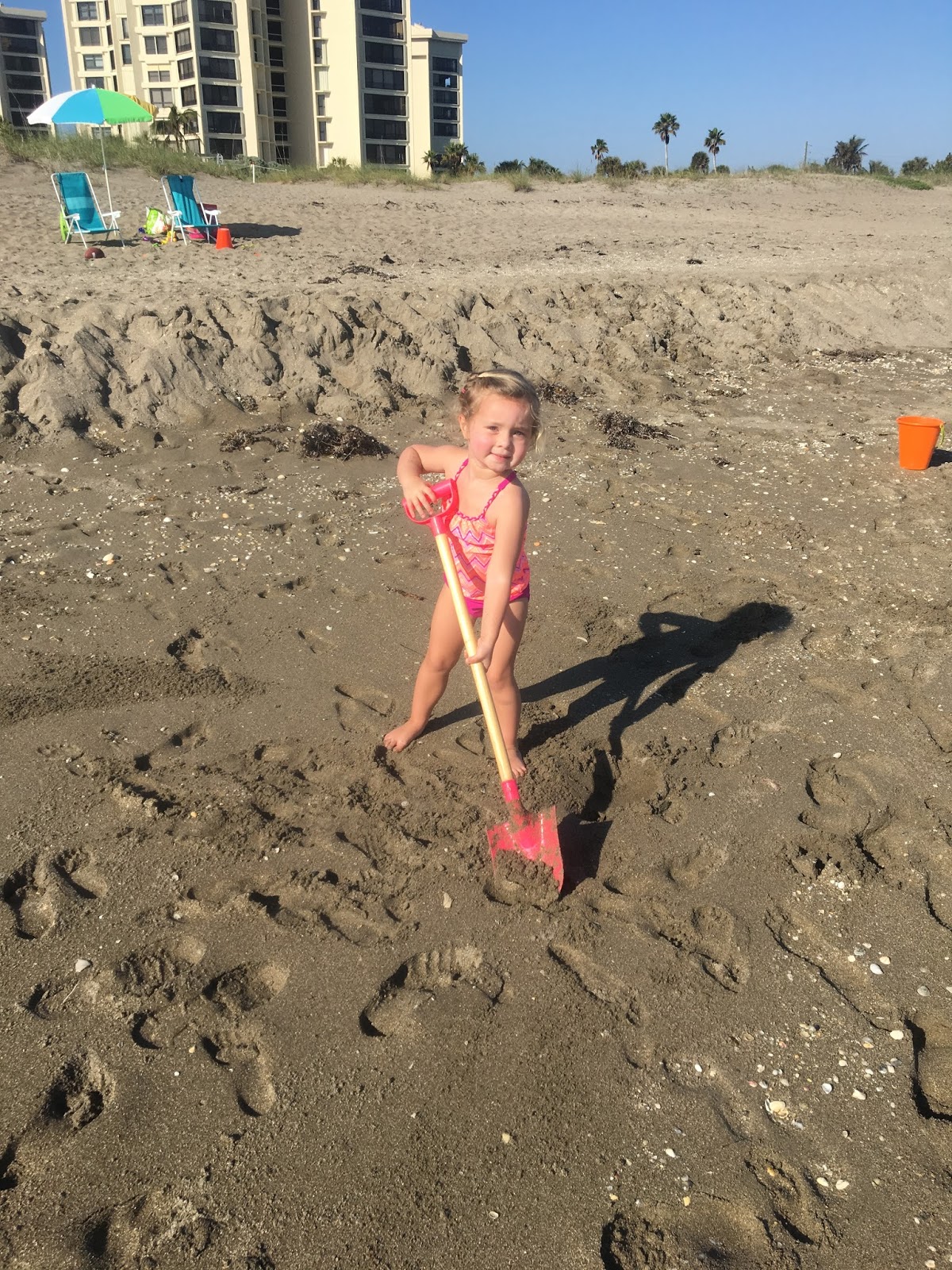 Daddy digs big holes and makes sandcastles most of the day.